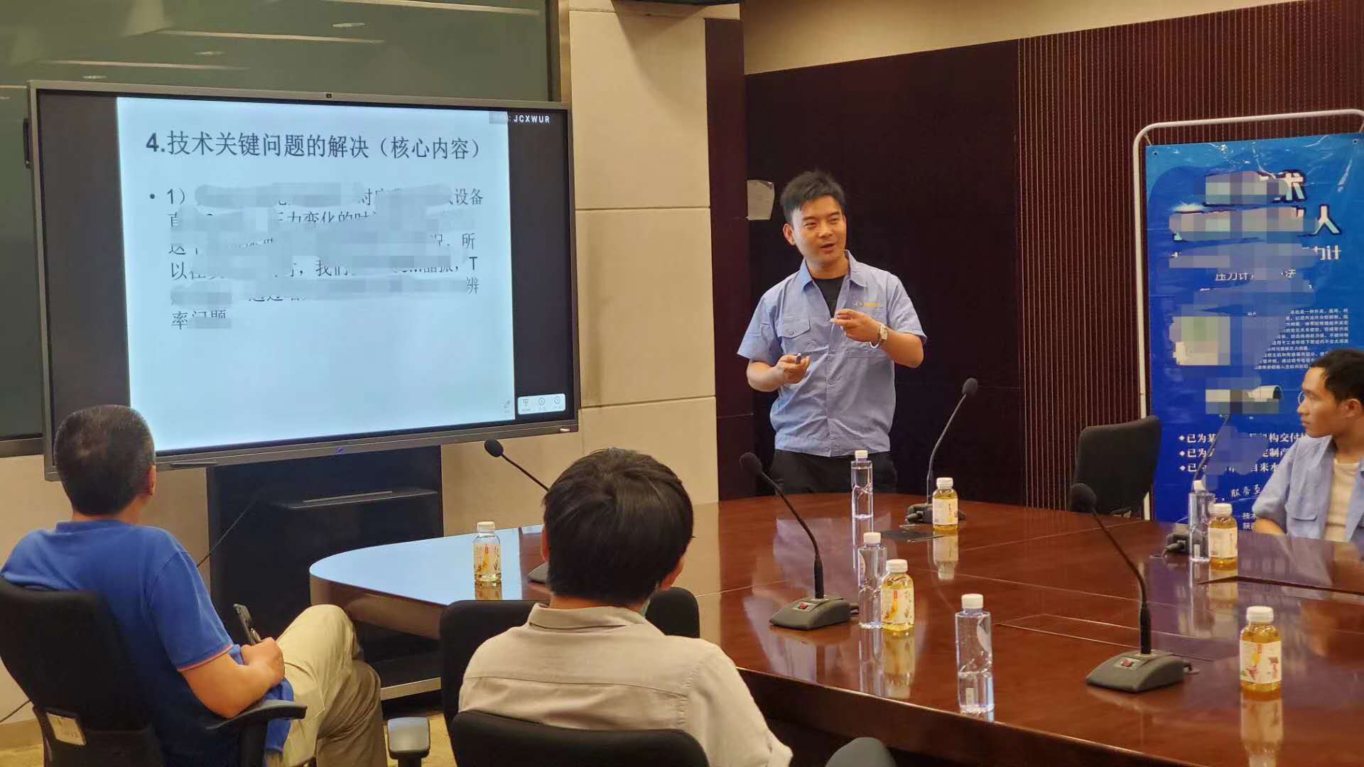 在座談會上,吳總給各位專家匯報了創威公司的發展情況,并就目前處于國內領先的全自動活塞式壓力計技術、超聲非接觸測壓技術給各位專家領導進行匯報。